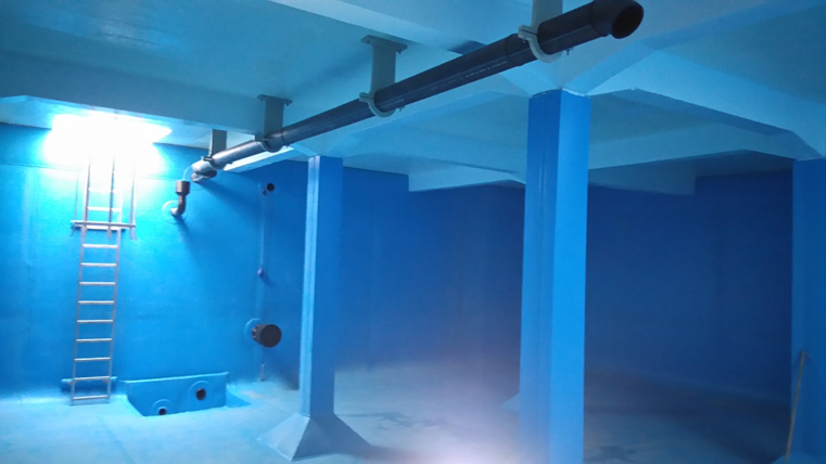 TECHNIPLAST s'est vu confié la rénovation d'un réservoir semi-enterré en pierres de taille (grès des Vosges). Ce réservoir d'une capacité de stockage de 400 m3 était revêtu initialement d'une résine armée endommagée.