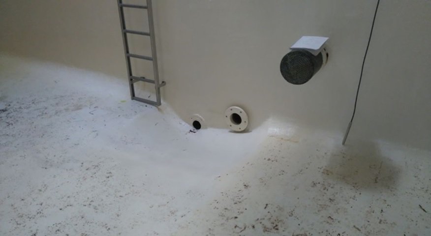 Avant de rendre l'ouvrage, nous avons procédé à un nettoyage et une désinfection complète du réservoir. Cette phase minutieuse nous permet également d'effectuer un dernier contrôle visuel du revêtement thermoplastique.