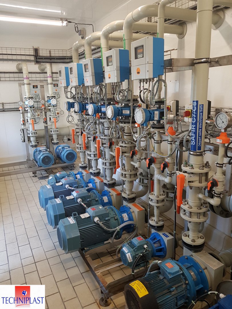 Le collecteur principal PPH ainsi que le supportage inox ont été réalisés en nos ateliers de GROSTENQUIN (57). Les tuyauteries de liaisons ont été par contre polyfusées et installées sur site par nos équipes de chantier permettant à notre client d'optimiser en toute collaboration l'ergonomie des points de manoeuvre et de lecture.