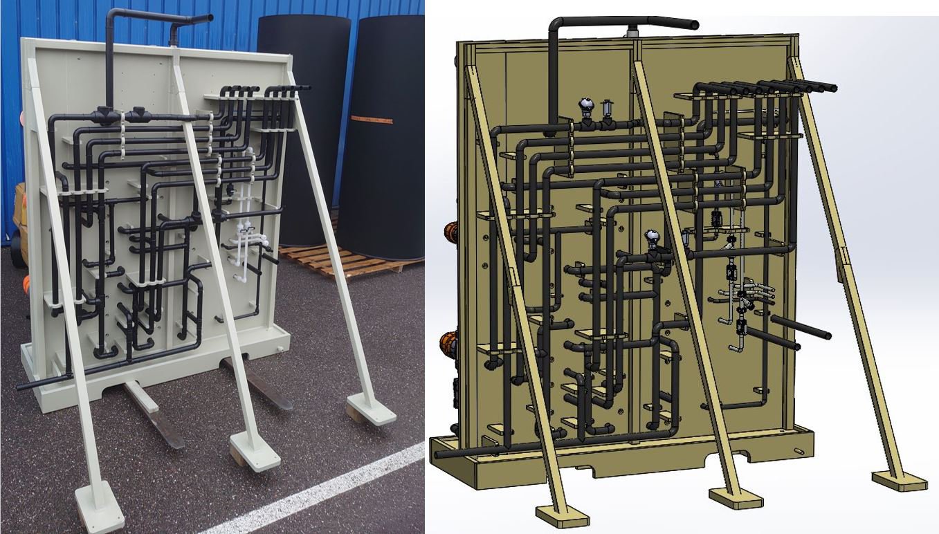Après validation, la panoplie a été assemblée et tuyautée dans nos ateliers, une étape clé pour réduire le temps d'intervention sur site.
