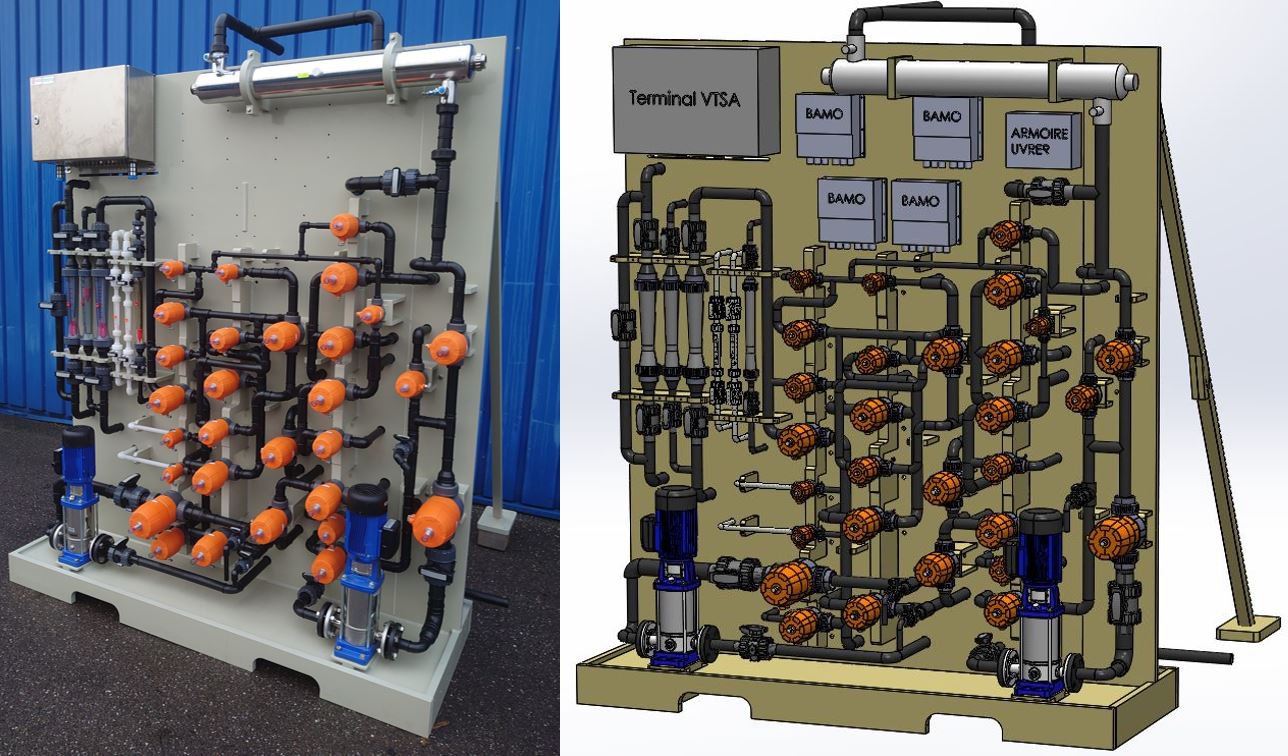 Concevoir, réaliser et installer sur site une panoplie de pilotage pour deux unités de traitement d'eau pourrait sembler être un projet standard, d'autant qu'un modèle d'installation existait déjà.